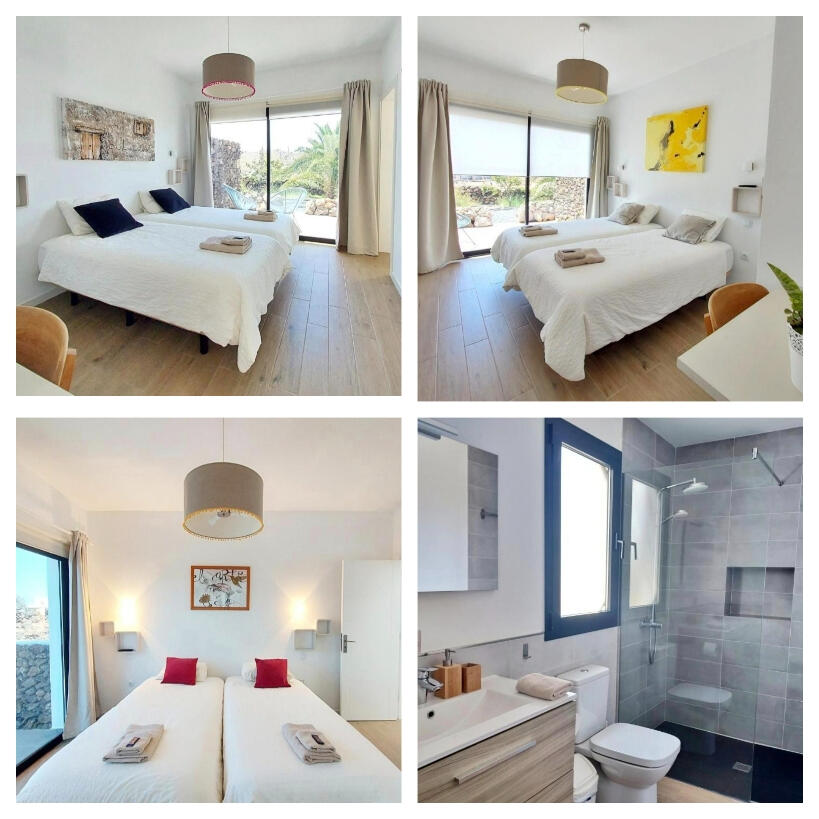Es gibt 4 Schlafzimmer mit jeweils 2 Einzelbetten und ein Bad in jedem Zimmer.